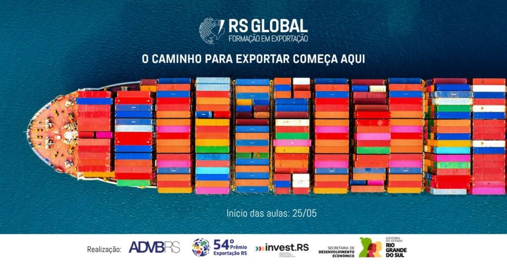 A Invest RS e a ADVB/RS, por meio do Conselho do Prêmio Exportação RS, acabam de abrir as inscrições para a nova edição do RS Global – Formação em Exportação. Com início em 25 de maio, o programa chega à segunda edição e busca capacitar empresas gaúchas para atuar de forma estratégica no mercado internacional, ampliando a competitividade e impulsionando as exportações do Estado.