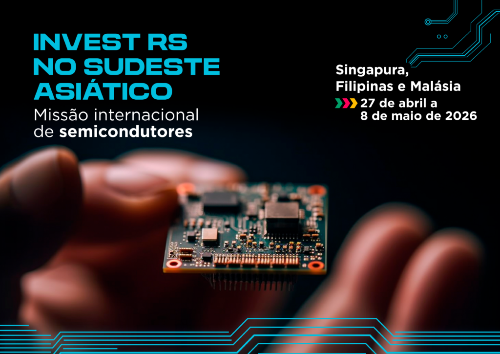 A Invest RS participa, de 27 de abril a 8 de maio, de uma missão focada em semicondutores no Sudeste Asiático, organizada pelo Ministério das Relações Exteriores (MRE). A programação inclui compromissos institucionais e técnicos com o ecossistema de Singapura, Filipinas e Malásia, com o objetivo de prospectar investimentos para o Rio Grande do Sul e fortalecer relações institucionais com órgãos do setor.